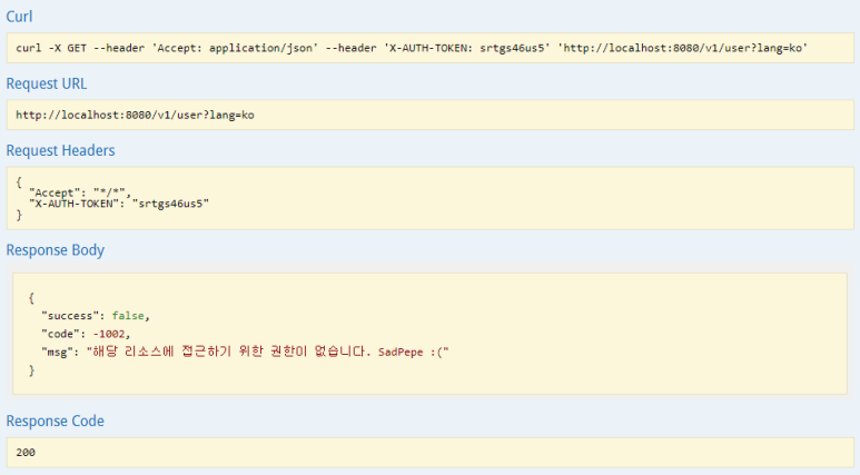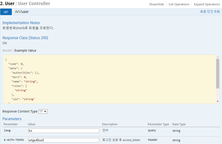 로그인 후 도출된 X-AUTH-TOKEN으로 회원을 조회해보자.