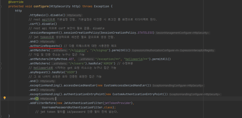 SecurityConfiguration.java의 configure(HttpSecurity http) 메서드 내부에서