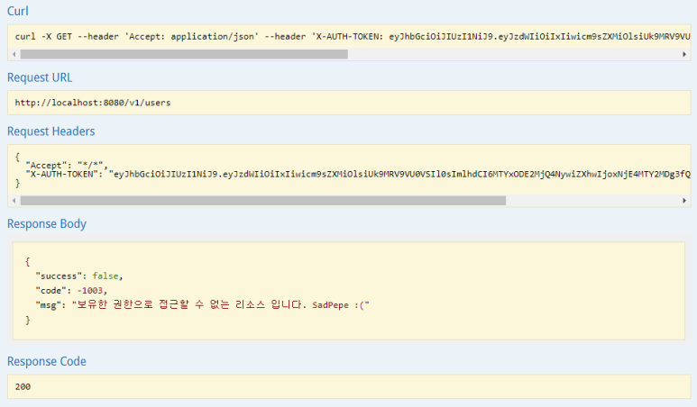 3. Jwt 토큰으로 api를 호출하였으나 해당 리소스에 대한 권한이 없는 경우