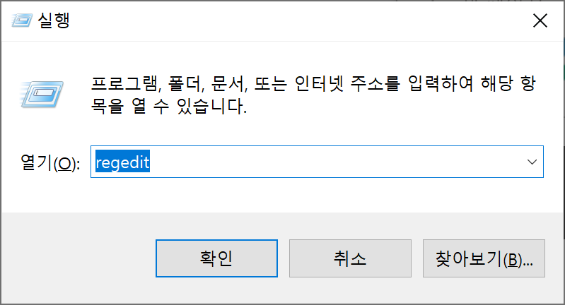 입력 후 레지스트리 창을 켠다.
