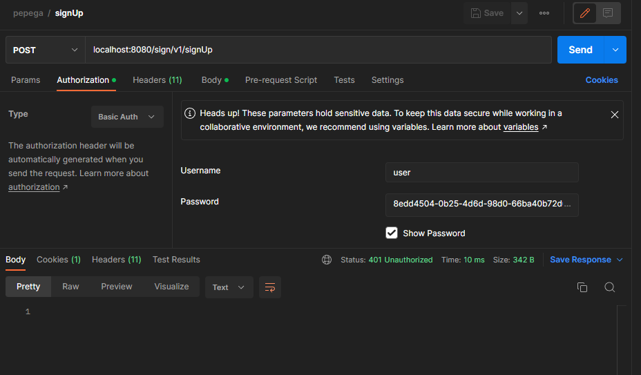 우선 api를 호출하기 위해 (여기선 "/sign/v1/signUp" api)