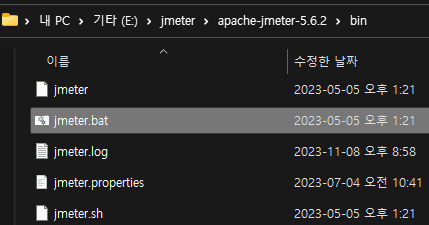apache-jmeter-5.6.2\bin\jmeter.bat 파일을 실행하면 됩니다.