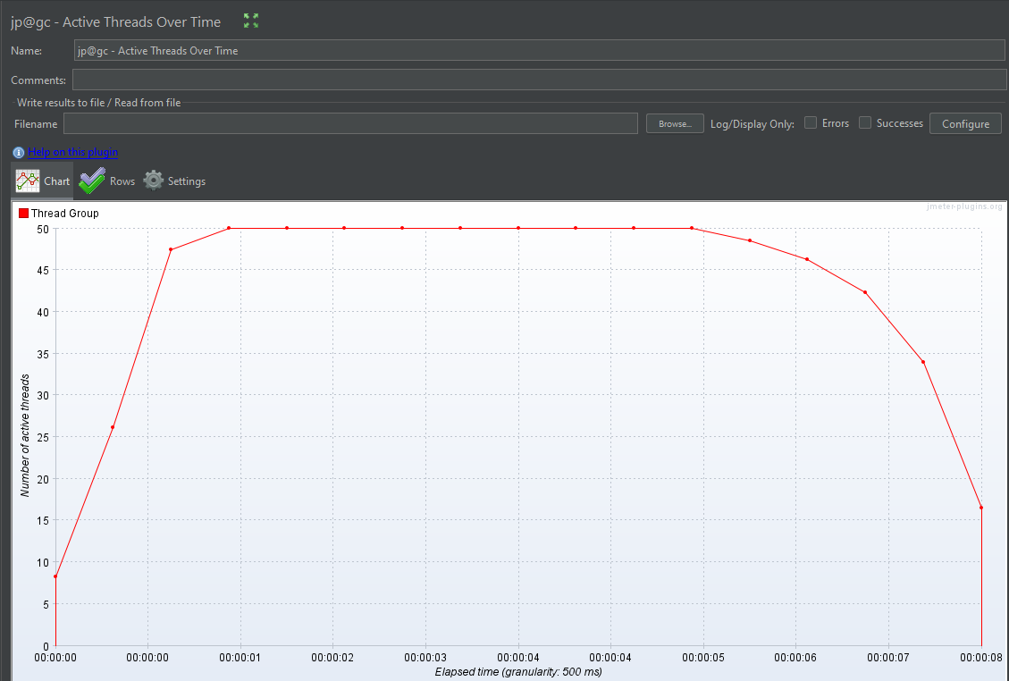 - 예를 들어, 10개의 Threads가 100초의 Ramp-up period면 10개의 Threads를 실행하는데에 100초가 걸립니다.