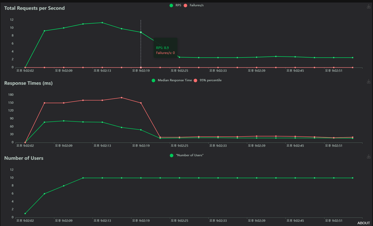 Locust를 실행하고 REST API에 부하를 준 뒤