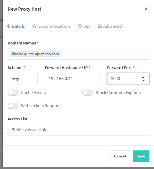 Add Proxy Host를 클릭합니다.