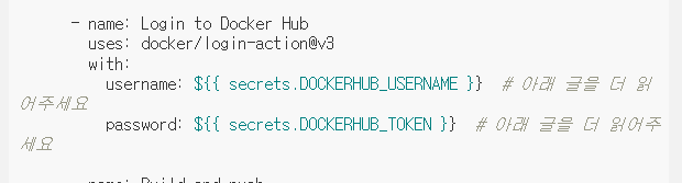 username: ${{ secrets.DOCKERHUB_USERNAME }} # 아래 글을 더 읽어주세요