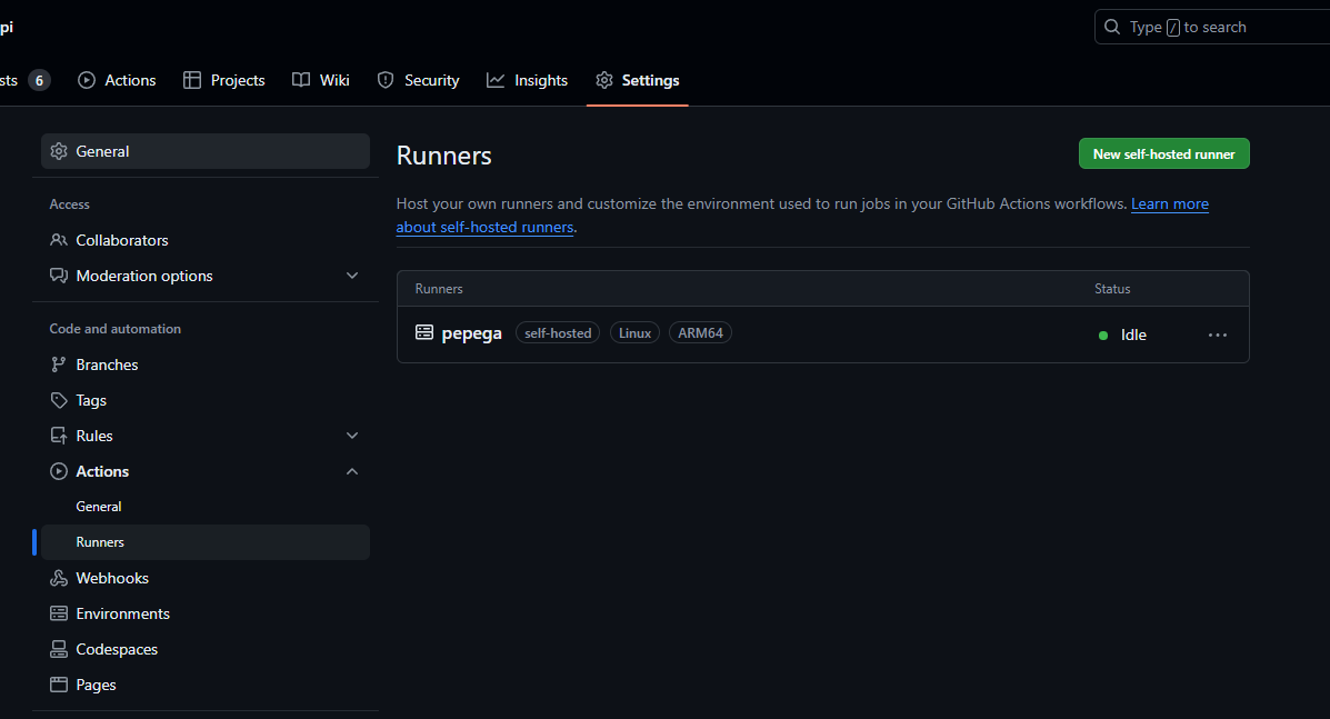 내 서버와 Github Actions가 연결된 것을 확인 할 수 있습니다.